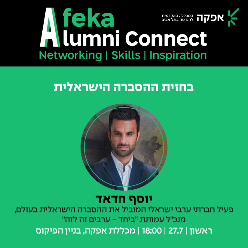 בקהילת הבוגרות והבוגרים רבים מאיתנו עובדים בצוותים רב-לאומיים, החשופים למסרים אנטי ישראליים ברשתות החברתיות ובתקשורת המסורתית. במפגש זה נוכל למלא מצברים, לקבל השראה ולחזק קול חשוב ומשמעותי כקולו הייחודי והחשוב של יוסף חדאד.