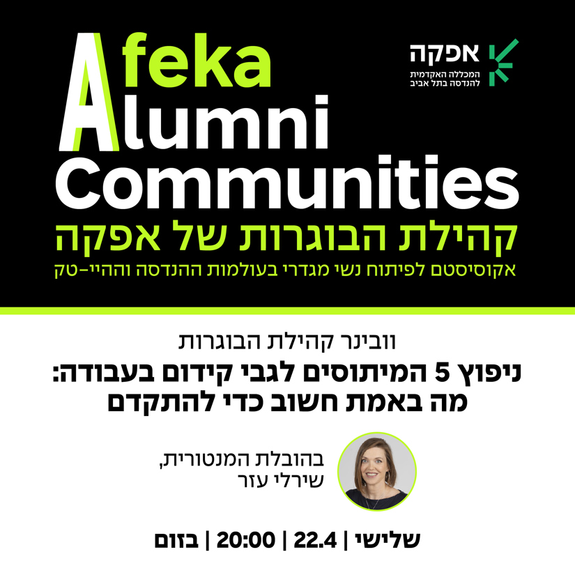 קהילת הבוגרות של אפקה ממשיכה ליזום ולחזק את הקשר עם בוגרות ההנדסה וההייטק, והפעם מזמינה אתכן לוובינר ייחודי בנושא קידום בעבודה: