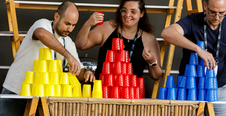 אחרי שלב ההשראה הגיע שלב הצחוק: גיא זו-ארץ הפעיל את הקהל בשעשועון אינטראקטיבי, תחרותי וקליל – "המכירה", שבו חברות וחברי סגל התמודדו באומץ עם משימות מאתגרות ומצחיקות במיוחד – מאכילת קאפקייקס ממולאים בטבסקו, דרך עמידות ידיים (שהקפיצו את צוות האירועים), ועד ניסיונות מרהיבים לייצב קפיץ על המצח. התוצאה? הרבה צחוק, אנרגיה טובה וזיכרונות שיישארו איתנו עוד זמן רב.