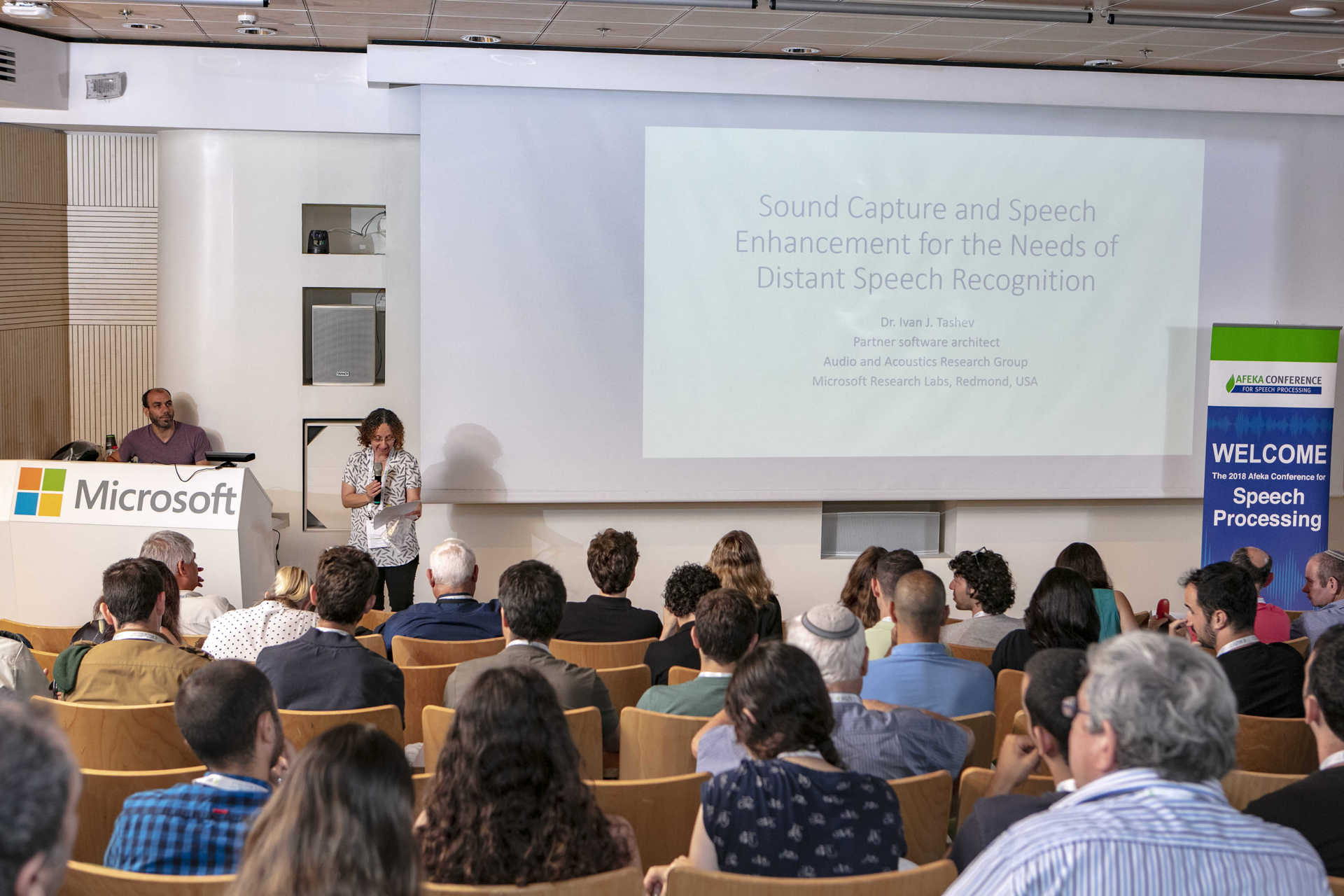 ד"ר עירית עופר, ראש ACLP, עמדה בראש הכנס שבו ניתנו שלוש הרצאות keynote מרתקות ע"י מרצים מובילים בתחומם מחו"ל: פרופ' הרווה בורלארד, מ - IDIAP שבשווייץ, הרצה על שימוש ברשתות עמוקות בזיהוי דיבור, ד"ר ניקו ברומר מ - Nuance Communications, הרצה על meta embedding במערכות זיהוי דוברים וד"ר איבן טאשב מ - Microsoft Research הרצה על זיהוי דיבור במרחק רב מהמיקרופון.