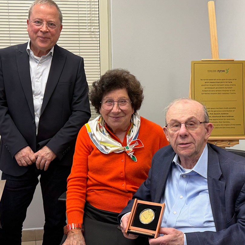 אפקה קיימה לאחרונה מפגש מרגש עם פרופ’ דוד זיידמן (אוניברסיטת Northwestern) וגברת שושנה זיידמן, כהוקרה על תרומתם הנדיבה לרכישת "אוהל שקט" בקמפוס אפקה. האוהל, אשר עתיד להיות מוקם בעוד מספר חודשים, יהווה מרחב שקט ובטוח ואיזור לליווי אישי וסדנאות לגוף ולנפש עבור סטודנטיות וסטודנטים משרתי ומשרתות מילואים בעבר בהווה ובעתיד ולכל מי שנושאים ונושאות עמם את השפעת אירועי ה־7 באוקטובר.