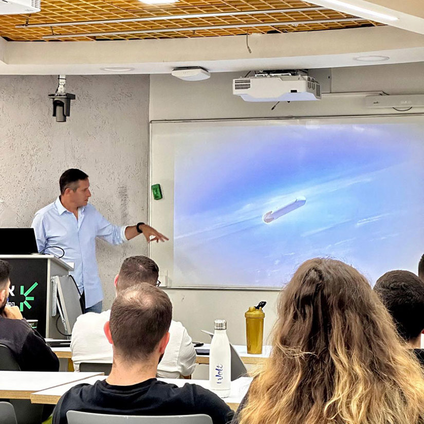 בהמשך, העביר אורי אורון הרצאה מרתקת לסטודנטיות ולסטודנטים על ההתפתחויות הדרמטיות בתחום חקר החלל. הוא שיתף בתובנותיו על השינויים שהתחום חווה -מההיסטוריה של חקר החלל ועד למגמות העתיד, כולל תפקידן הגובר של חברות פרטיות והשפעתן על המבנה המסורתי של תחום החלל שהונהג בעבר בידי מדינות בלבד.