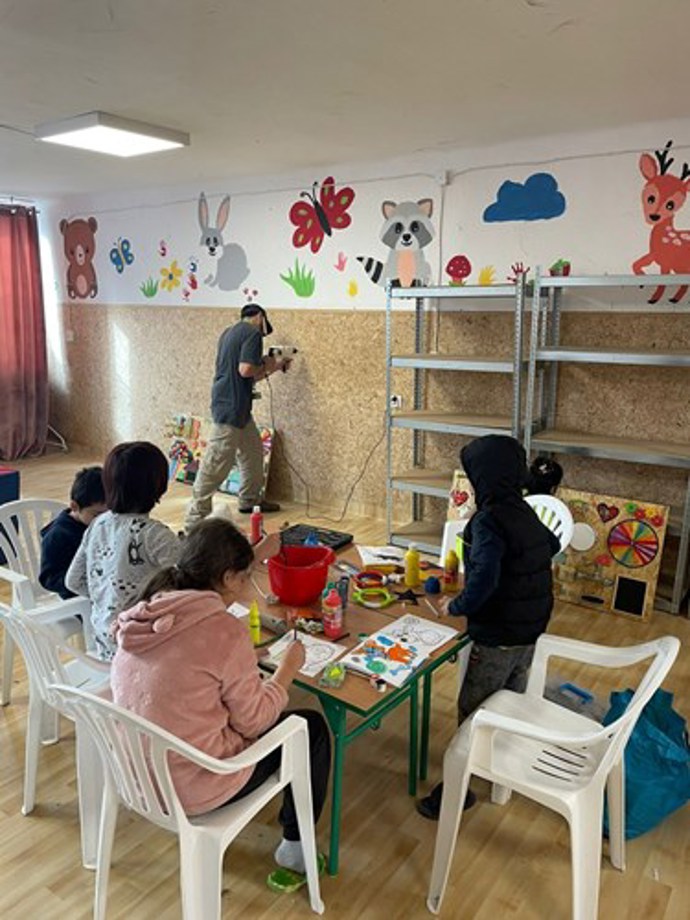 בנוסף, בחדר הילדים בלטה חוסר הנגישות לשולחנות הלמידה והיצירה. המהנדסים מצאו פתרון יצירתי ובשיתוף מלא של הילדים תוכננו, שורטטו ונבנו פינות ישיבה מחומרים ממוחזרים. פינות הישיבה הותאמו לגובה השולחנות ולמספר הילדים הרב ואפשרו נגישות ונוחות מירבית. החדר שהחל כאפל ולא אטרקטיבי, הפך למרחב צבעוני, אינטראקטיבי ומלא שמחת חיים .