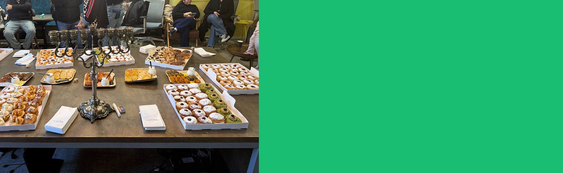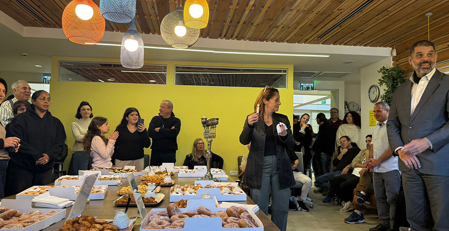 לכבוד חג האורות התכנס סגל אפקה להדלקת נר רביעי של חנוכה, באירוע חמים ומרגש ששם במרכז את הקהילה, השותפות והתקווה. חברי וחברות הסגל נפגשו להפוגה משותפת מהשגרה, לאכילת לביבות וסופגניות מיוחדות, ולרגעים קטנים של יחד, כאלה שמרכיבים את הרוח האנושית של קהילת אפקה.