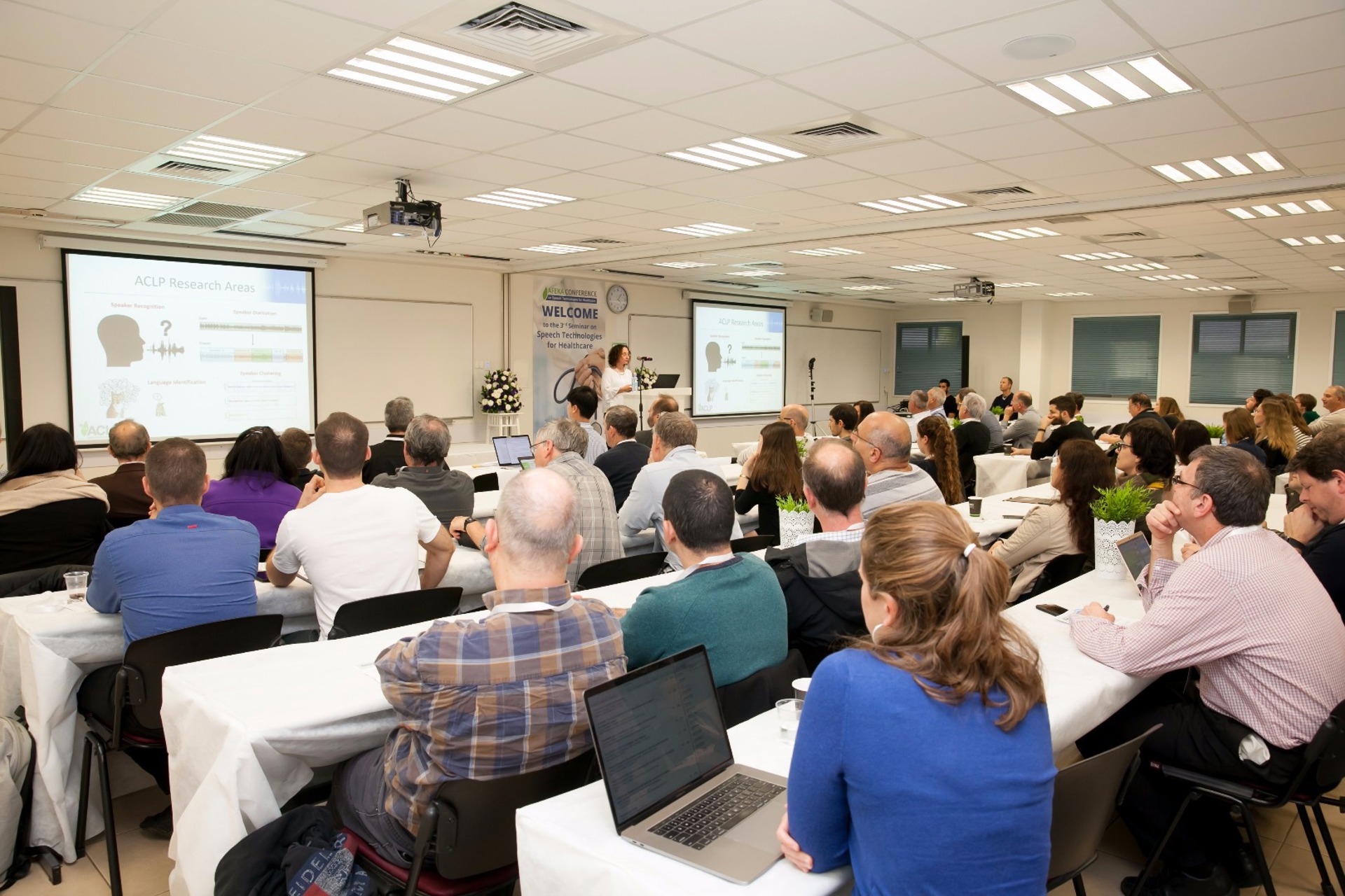 ביום חמישי התקיים באפקה הסמינר השלישי בנושא Speech Technologies for Healthcare שעסק בשימוש בטכנולוגיות זיהוי ועיבוד דיבור לזיהוי וניטור של מחלות. את הסמינר ארגן מרכז אפקה לעיבוד שפה (ACLP) בראשות ד"ר עירית עופר, והשתתפו בו למעלה מ 80 אנשים מתחומים שונים - רופאים, קלינאי תקשורת וחוקרי זיהוי דיבור. הכנס שיקף את המגמה ההולכת וגוברת של שילוב טכנולוגיות עיבוד קול בתחום הרפואה – מגמה שנמצאת גם בלב העשייה של תחום ההנדסה הרפואית והנדסה ביו רפואית. חברת פונטיקה התומכת בפעילות הרפואית ב- ACLP נתנה חסות לאירוע.